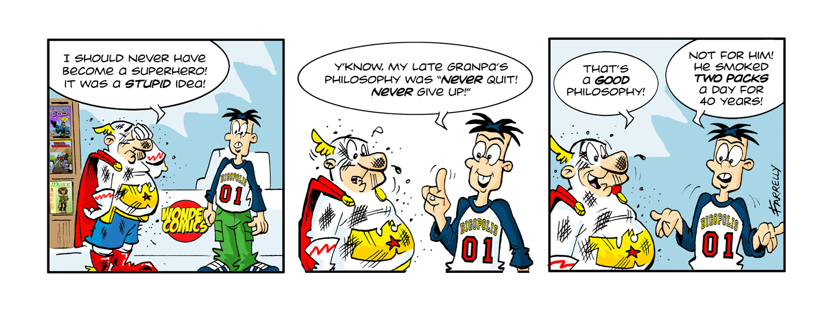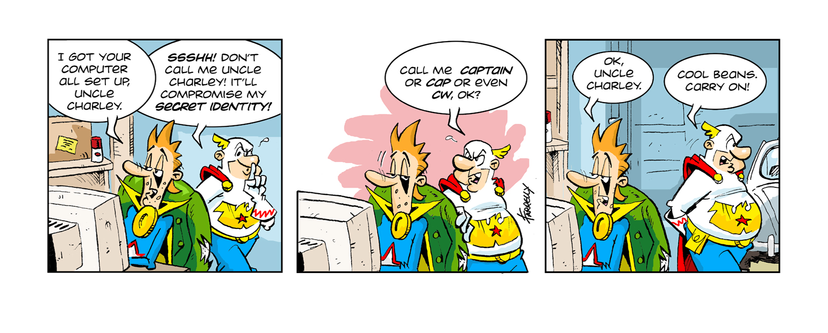 I’ve decided to move the Captain Wonder comic strip entirely to his Facebook page at https://www.facebook.com/charleywinkle so if you want to continue reading his adventures, you can go there! Cheerio!